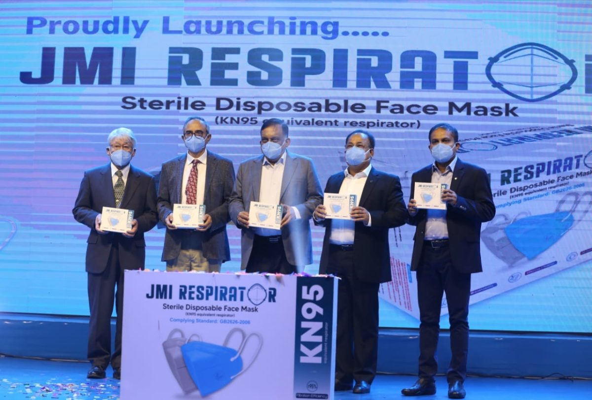 Launch of locally-produced international-standard KN-95 masks by JMI Hospital Requisite Manufacturing Ltd, attended by sector experts.